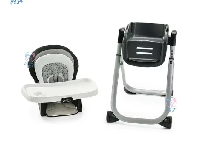 • سینی قابل جابجایی: سینی را می‌توان از صندلی جدا کرد تا از آن به عنوان صندلی معمولی استفاده شود یا تمیز کردن آن آسان‌تر گردد.