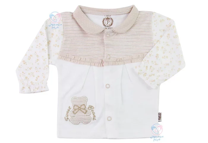 لباس نوزادی آشور Ashoor طرح گل زیر دکمه آستین بلند