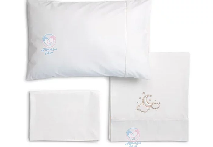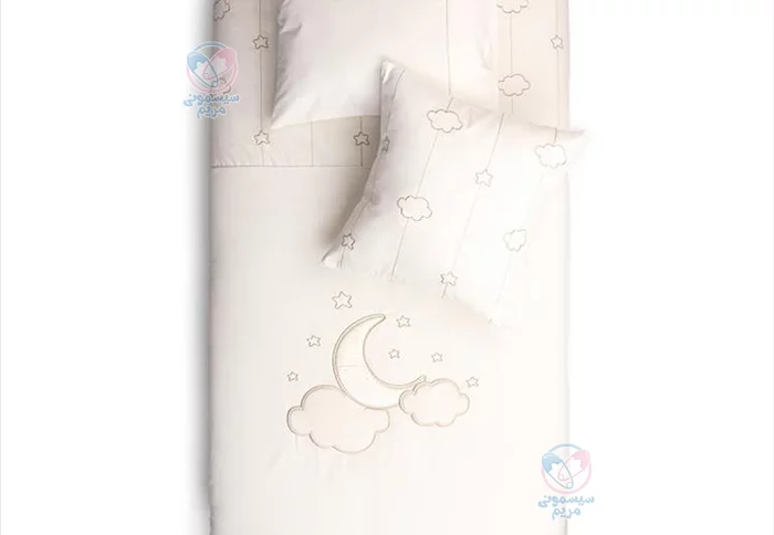 سرویس خواب ماه و ستاره از جنس کتان تهیه شده است. این جنس پارچه دارای نرمی و لطافت بالاست و فاقد مواد مضر بوده و دارای استانداردهای لازم برای حفظ سلامت پوست حساس کودک است.