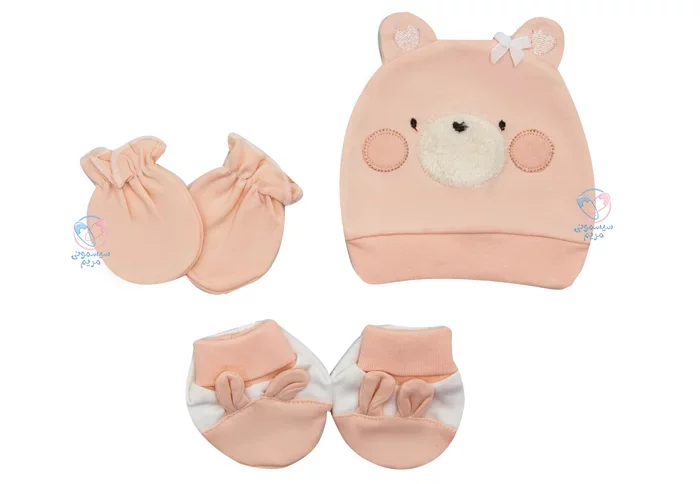ست کلاه و دستکش و پاپوش خرس لپ گلی پاپو 163078 Papo