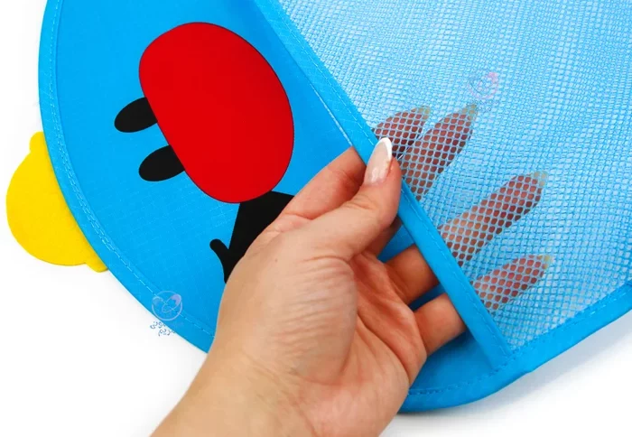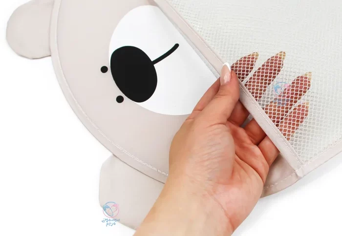 این کیسه از پارچه ضدآب و بادوام تولید شده که مقاومت بالایی در برابر رطوبت محیط حمام دارد. بهدلیل استفاده از مواد ایمن و فاقد BPA، نگرانی بابت تماس مستقیم اسباببازیهای کودکان با سطح کیسه وجود ندارد. طراحی آن بهگونهای است که بهراحتی آب از آن خارج میشود و از تجمع رطوبت و رشد باکتری جلوگیری میکند.