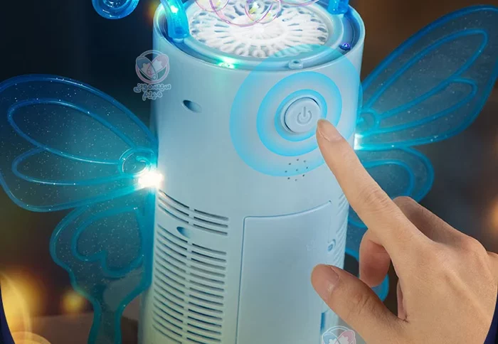 این دستگاه بهصورت هوشمند حباب تولید میکند و با دکمه خاموش فعالیت خود را قطع میکند. از طرفی، دکمهای برای تنظیم سرعت خروج حباب نیز در آن طراحی شده است. تنها نکته این است که در زمان بازی توجه داشته باشید که کودک مایع را با آب اشتباه نگیرد.