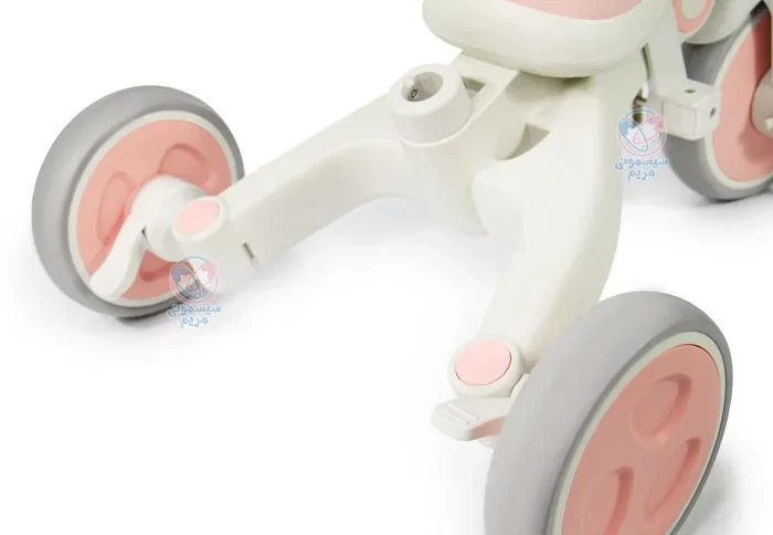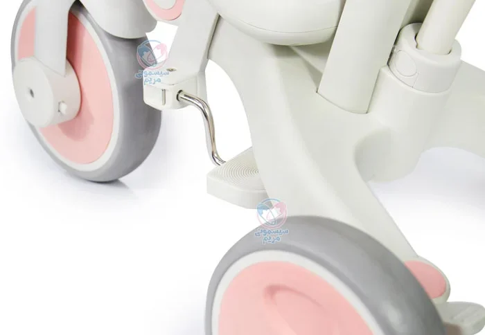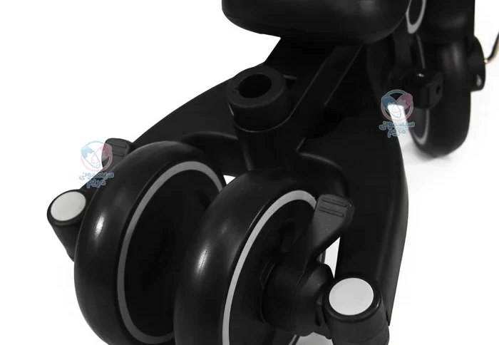لاستیکهای این سه چرخه از جنس اسفنجی ساخته شدهاند که باعث میشود سواری نرمتر و راحتتر باشد. این جنس همچنین کمک میکند تا در سطوح مختلف، به خوبی عملکرد داشته باشد و از لغزش جلوگیری کند.
