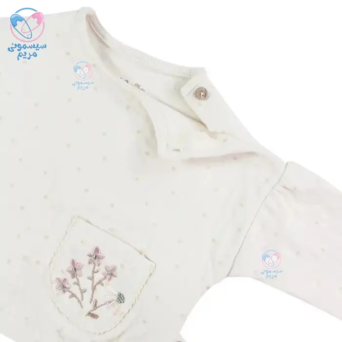 بلوز شلوار آنا بابا Anna Babba طرح گل با طراحی زیبا و رنگ کرمی ملایم، یک انتخاب مناسب برای کودک شماست. طراحی این بلوز و شلوار بسیار ساده و در عین حال شیک است. در قسمت جلویی لباس یک جیب با طرحهای گل ریز وجود دارد که زیبایی خاصی به لباس افزوده است. این لباس دخترانه از جنس نخی تهیه شده و در سایزهای 0، 1 و 2 موجود میباشد و کودکان از بدو تولد تا 9 ماهگی میتوانند از آن استفاده کنند. در ادامه بیشتر با ویژگیهای این محصول آشنا خواهیم شد.