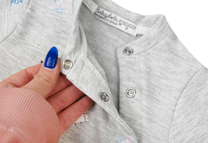 - رنگ خنثی و ملایم: رنگ طوسی باعث میشود این سرهمی علاوهبر زیبایی و آرامشبخش بودن، بهراحتی با سایر لباسهای نوزاد ست شود؛