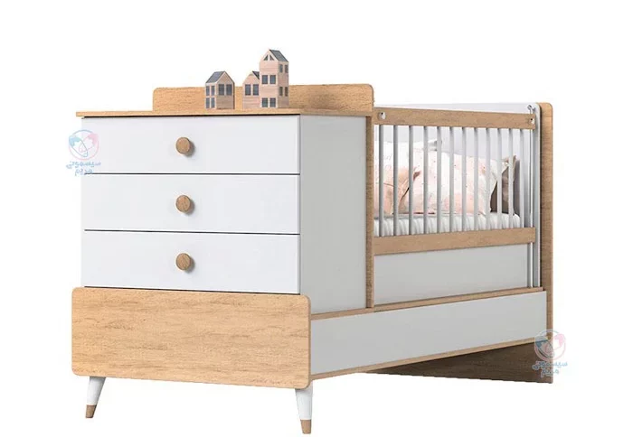 در قسمت جلوی تخت نوزاد نیز یک دراور ۳ کشو وجود دارد که قابلیت جدا شدن و استفاده به صورت تکی را دارد. به این ترتیب میتوان تخت و پارک نوزاد را به یک میز تحریر و دراور مجزا و یک تخت نوجوان با ابعاد مناسب و بزرگ تبدیل کرد که در سنین بالاتر کودک نیز با بهترین کیفیت و کارایی قابل استفاده است.