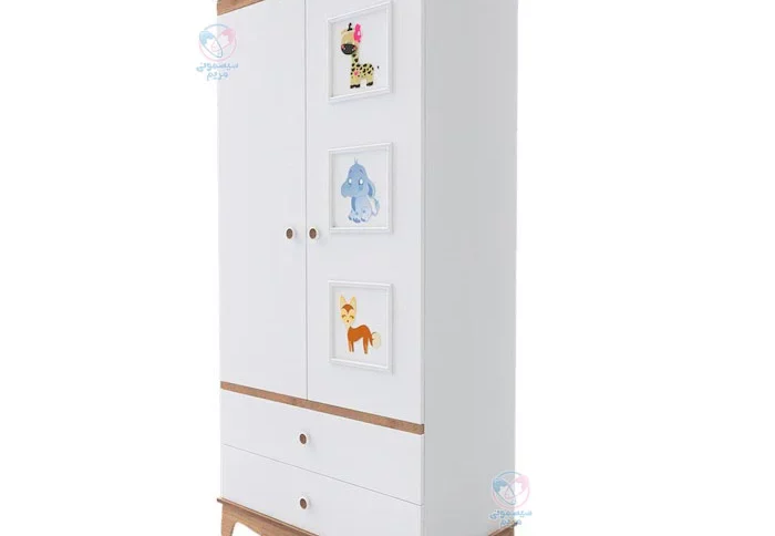 محصول فوق، کمد دو در فوقالعاده زیباست که یک در آن ساده و در دیگر، دارای نقشهایی ملیح و جذاب از حیوانات است. علاوه بر نکات مطلوب ظاهری، این محصول فضای کاربردی مناسبی نیز دارد که از رگال و طبقه در بالای کمد و 2 کشو عریض و جادار در قسمت پایین کمد تشکیل میشود. تقسیمبندی درست فضای داخلی کمد رایکا به طبقه، کشو و رگال، فضای مورد نیاز شما برای چیدمان لباسها و سایر وسایل کودک مانند کفشها، جورابها و… را تأمین میکند.