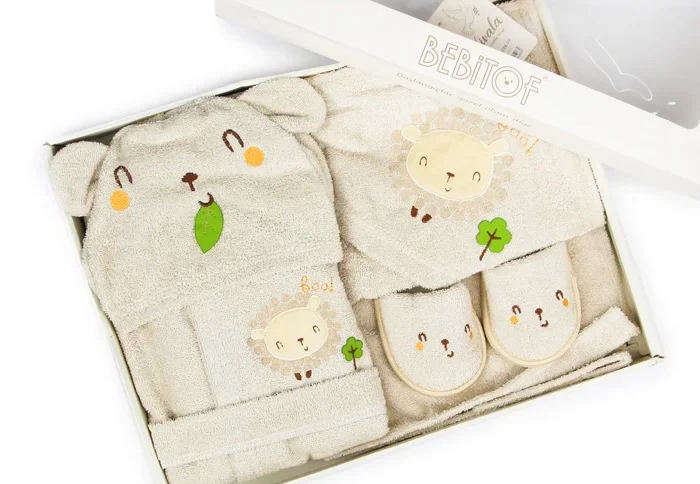 | محتویات بسته | پاپوش, حوله تنپوش کلاهدار, حوله کلاهدار, لیف |