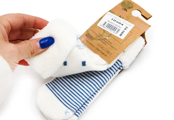 - جنس نرم و لطیف: این جورابها از ترکیب نخ پنبهای و حولهای ساخته شدهاند که نهتنها پاهای کودک را گرم نگه میدارد، بلکه بسیار نرم و لطیف است و به پوست حساس کودک آسیبی نمیزند.