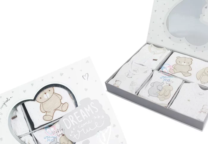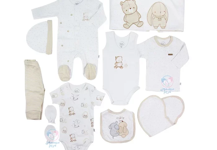 ست جعبهای لباس نوزاد تدی استار از برند ایرانی نیلی، جزو باکیفیتترین و بهترین ستهای داخلی است. این محصول تمامی تکههای مورد نیاز یک نوزاد را داراست. از ویژگیهای این ست، میتوان به موارد زیر اشاره کرد: