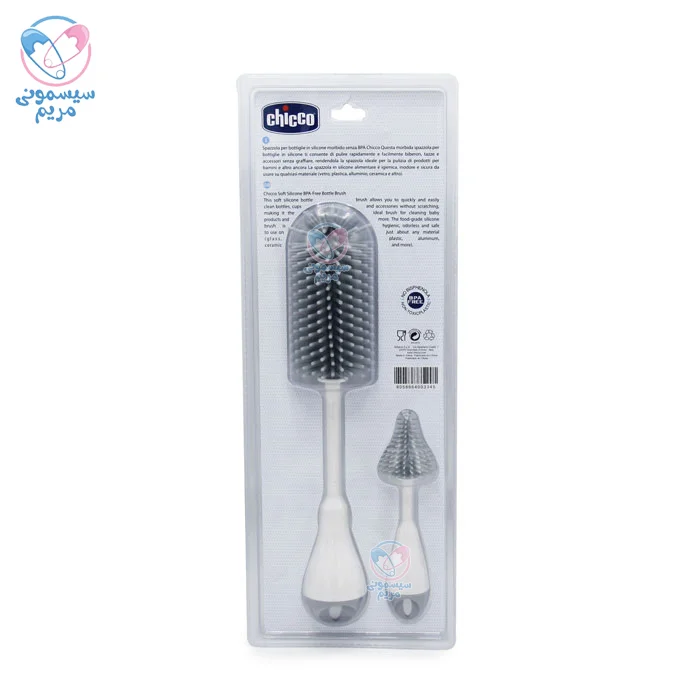 شیشه شور 3 تیکه سیلیکونی چیکو Chicco با دو برس سیلیکونی فرچهای و یک برس نی شور طراحی شده است. این محصول با دسته ضد لغزش بسیار عالی طراحی شده است. این ویژگی به کاربران اجازه میدهد تا با راحتی و امنیت بیشتری از آن استفاده کنند و مانع از سر خوردن دستها حین شستشو میشود. یکی از نکات مهم درباره این محصول این است که فاقد BPA و هرگونه مواد مضر و شیمیایی است. در ادامه بیشتر با ویژگیهای این محصول آشنا خواهیم شد.
