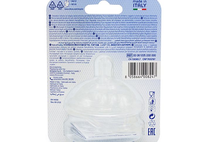 سر شیشههای چیکو در اندازهها و جریانهای مختلف (مثلاً ۱ قطره، ۲ قطره و ۳ قطره) موجود هستند. این امر به والدین اجازه میدهد تا طبق نیاز نوزاد خود، سر شیشه مناسب را انتخاب کنند.