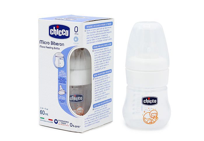 شیشه شیر طلقی و کوچک چیکو با گنجایش ۶۰ میلی لیتر و ظرفیت نیم قطره در سرشیشه، برای تغذیه نوزادان تازه متولد شده (new born) بسیار مناسب است و با بالاترین استاندارد طراحی و تولید، ساخته و در بستهبندیهای جعبهای بسیار شکیل عرضه میشود.