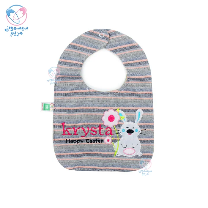 این پیشبند از جنس نخ با پشت مشمایی تولید شده که این ترکیب باعث میشود کودک در هنگام استفاده از آن، راحتی بیشتری داشته باشد.