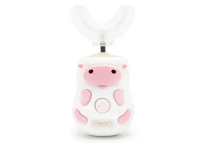 مسواک برقی سیلیکونی گاو، به شکل u  با گردش 360 درجه برای راحتی بیشتر کودک در زمان مسواک زدن طراحی و تولید شده است. این محصول فاقد مواد مضر و شیمیایی بوده و برای کودک از 1 تا 8 سالگی مناسب است. وب‌سایت سیسمونی مریم، اطلاعات بیشتری از مسواک برقی در اختیار شما قرار داده تا با ویژگی‌های دیگر مسواک برقی آشنا شوید.