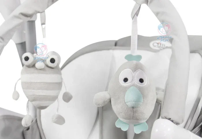• این صندلی دارای قابلیت تاب شدن است که به آرام کردن کودک کمک می‌کند و تجربه‌ای لذت‌بخش برای او ایجاد می‌نماید؛