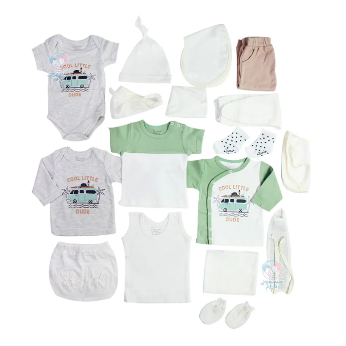 ست بیمارستانی 19 تیکه دانالو Danaloo Bus مجموعه‌ای از لباس‌ها و لوازم ضروری است که نوزاد شما در بیمارستان پس از تولد به آن نیاز دارد. ست بیمارستانی دانالو از پارچه نخ‌پنبه، نرم و لطیف تهیه شده است و تمامی لوازم مورد نیاز نوزاد را دارد. طراحی این ست بسیار شیک و زیبا است و شامل 19 تکه از جمله رکابی، بلوز آستین کوتاه، بادی آستین کوتاه، بلوز آستین بلند، مانتو، شلوار بدون جوراب، شلوار جوراب‌دار، شورت عینکی، دستکش، کلاه، ناف‌بند، جوراب، کلاه بندی، آروغ‌گیر، پتو، دستمال شیردهی و پیشبند است. این ست برای نوزادان 0 تا 3 ماه مناسب است. در ادامه بیشتر با ویژگی‌های این محصول آشنا خواهیم شد.