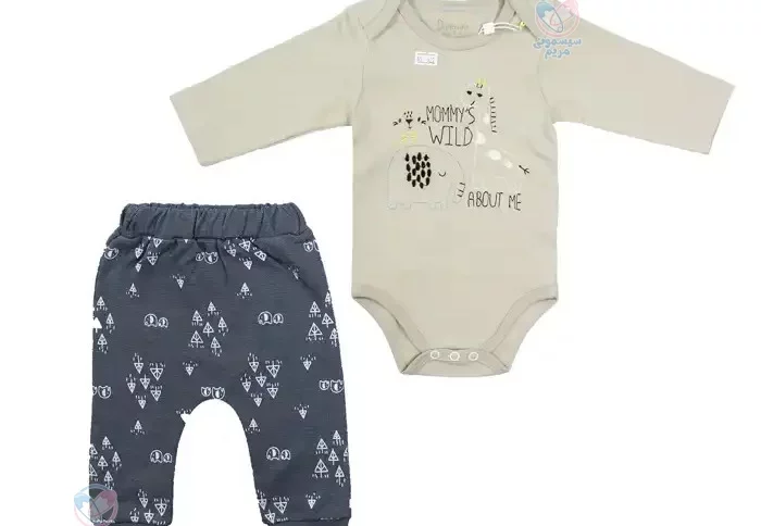 بادی بلند و شلوار دانالو Danaloo طرح فیل کوچک - 1 (3 تا 6 ماه)