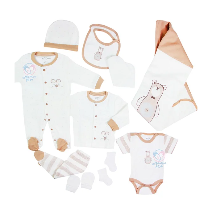 نوزادان تازه متولد شده پوستی حساس و لطیف دارند که سلامت پوست آنها به مراقبت ویژهای نیاز دارد. از این رو انتخاب لباس و وسایل مناسب برای نوزادان بسیار مهم است. ست بیمارستانی عزیز به به طرح خرس ایستاده، یک انتخاب ایدهآل برای نوزادان است.