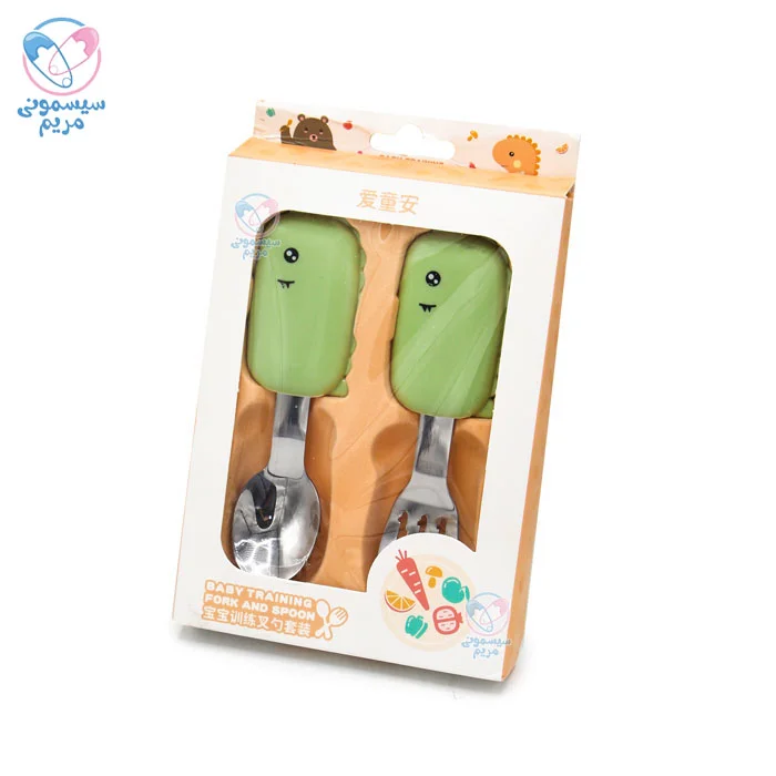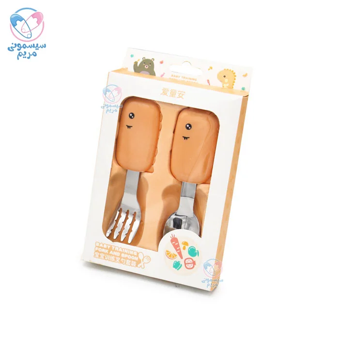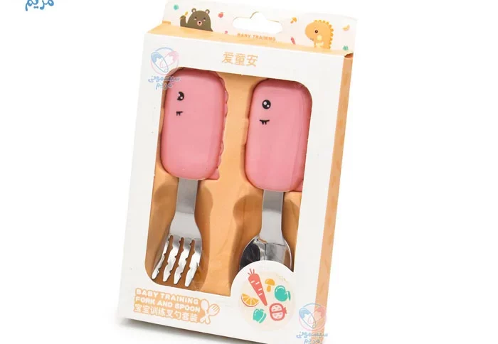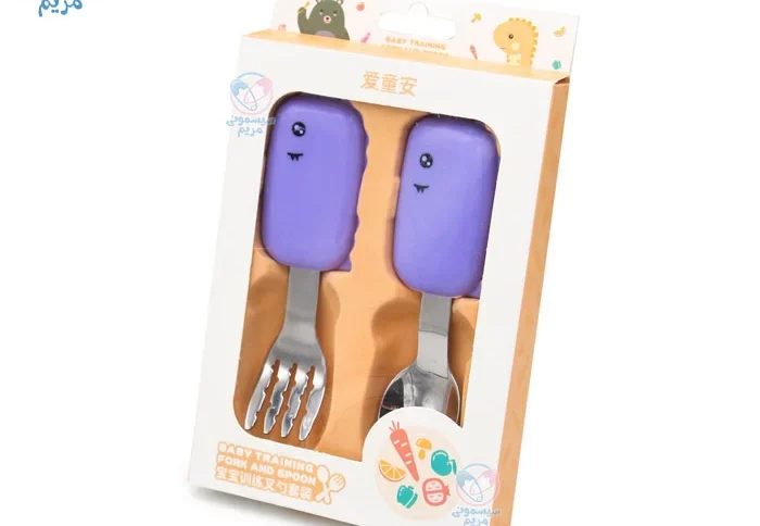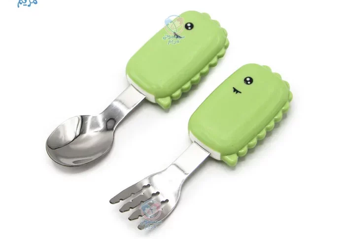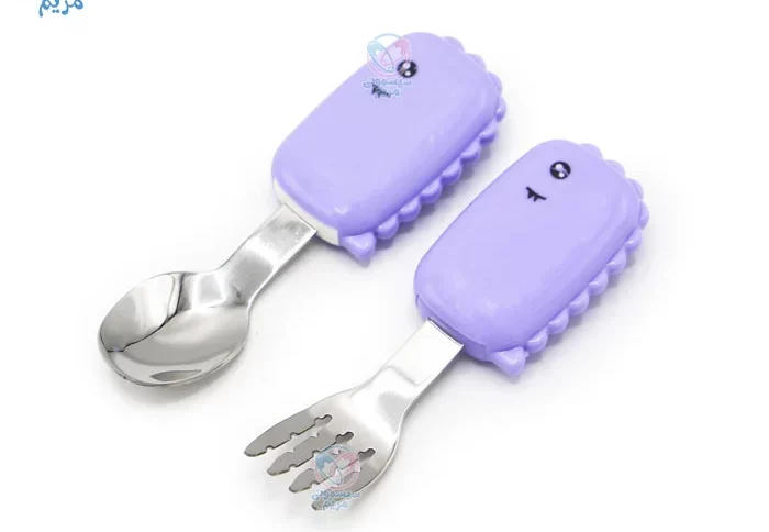 - شکل و سایز قاشق و چنگال بهگونهای طراحی شده تا به راحتی در دهان کودک جای گیرد و هنگام غذا خوردن از آسیب احتمالی جلوگیری کند.