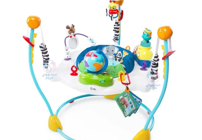 - صندلی جامپینگ، قابلیت چرخش 360 درجه دارد که به کودک اجازه میدهد به اطراف نگاه کند و بازی کند؛
