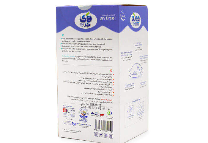 | سایر توضیحات | محصولی نرم و لطیف با قدرت جذب بالا، 100% سلولز طبیعی، دارای لایه جاذب، قابل استفاده برای سایزهای مختلف سینه |