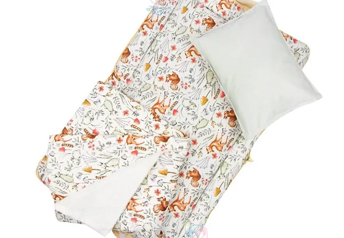 بالش کوچک و لطیف با طراحی مناسب برای نوزاد, پتو یک رو مخمل و یک رو کتان نخ, تشک یک رو کتان نخ یک رو پیکه, تولید شده از الیاف ضدحساسیت برای ایمنی پوست نوزاد, طراحی شیک، سبک و جمع‌وجور برای استفاده روزمره و سفر