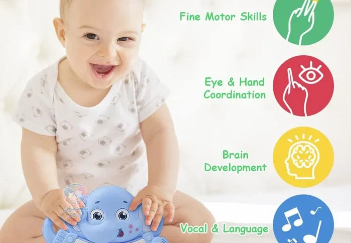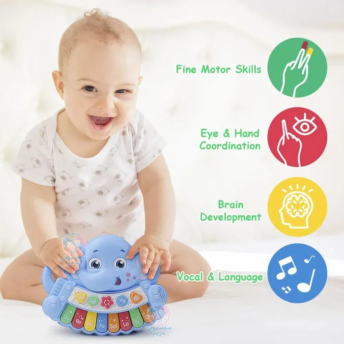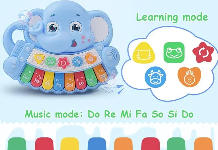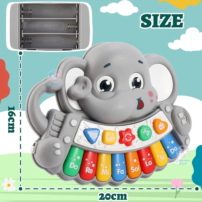اسباببازی پیانو طرح بچه فیل، یک ابزار مفید و سرگرمکننده برای توسعه مهارتهای موسیقی و شناختی کودکان است. طراحی زیبا، امکانات صوتی جذاب و ابعاد مناسب آن، باعث میشود که کودکان از بازی با این اسباببازی لذت ببرند. این محصول از قابلیتهای جذاب صوتی نیز برخوردار است؛ مثلا با فشار دادن هر طرح حیوان، صدای آن حیوان شنیده میشود. از دیگر ویژگیهای این محصول، میتوان به موارد زیر اشاره کرد: