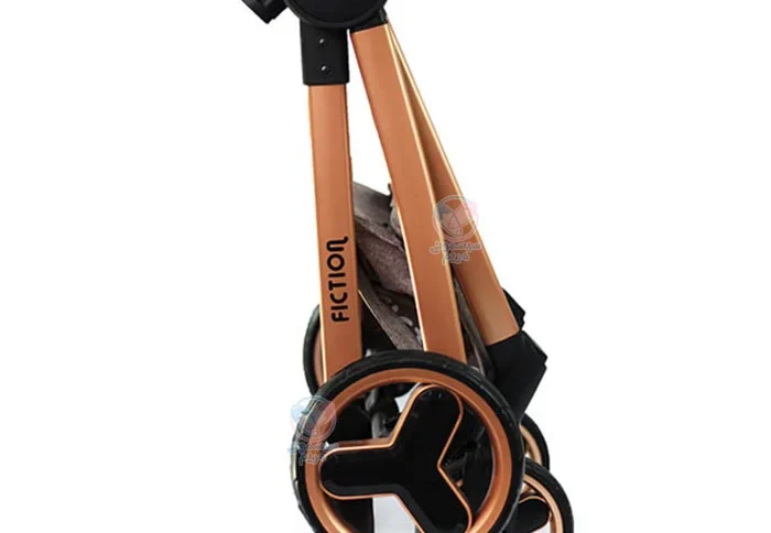 پارچه به کار رفته در ست کالسکه Fiction برزنت ضد آب بوده. این پارچه مقاومت و استحکام بالایی در برابر وزن کودک داشته و به دلیل طراحی زیبا و خاص کالسکه، محیطی دنج و ارگونومیک را طی حمل برای کودک فراهم میکند. این پارچه قابل شستشو بوده و در صورت لک شدن و کثیفی تشکهای دوبل، به راحتی میتوانید آنها را جدا کرده و بشویید تا اثری از لک روی آن باقی نماند. علاوه بر برزنت ضد آب در طراحی دسته این محصول از پارچه چرم به عنوان روکش دسته هدایت استفاده شده که به دلیل استفاده از زیپ در طراحی آن، قابل جدا شدن است.