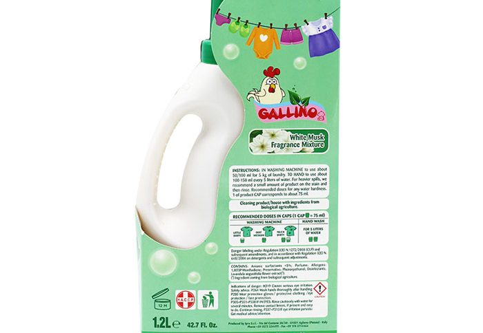 این برند به صورت تخصصی به تولید محصولات شوینده کودک میپردازد. محصولات GALLINO، به طور ویژه طراحی و تولید شدهاند تا از پوست حساس نوزادان مراقبت کنند. این محصولات مانع از ایجاد حساسیت پوستی و ایجاد هرگونه علائم آلرژیک میشوند و باعث حفظ کیفیت پارچهها و لباسهای کودک میگردند.
