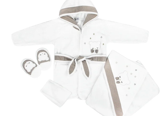 | محتویات بسته | پاپوش, حوله تنپوش کلاهدار, حوله کلاهدار, لیف |