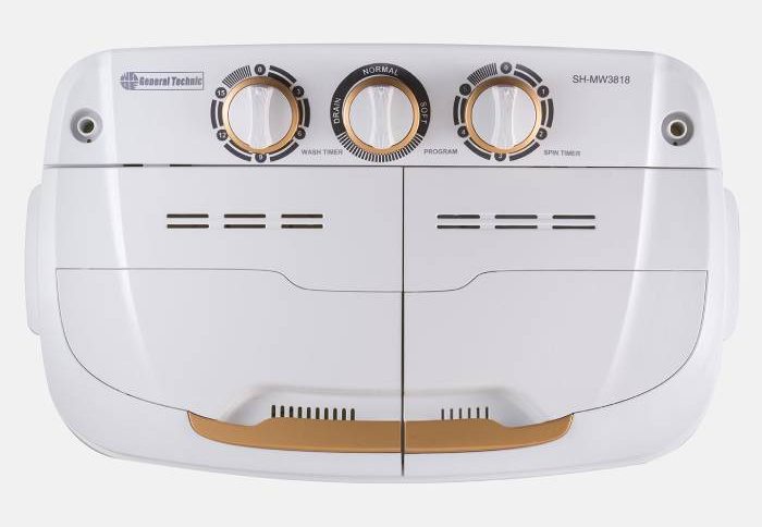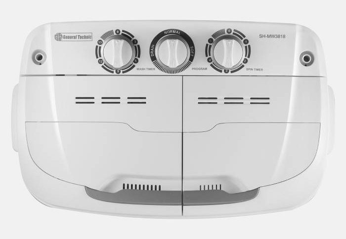 مینی واش دوقلو جنرال تکنیک General technic 3818 دارای ۲ مخزن دوقلو یکی برای شستشو و دیگری برای خشک کردن لباسها با ظرفیت ۳٫۸ کیلوگرم به همراه ۲ برنامه شستشو عادی و ملایم، ۲ ورودی مجزای آب جهت آبگیری و آبکشی لباسها در هر یک از مخازن و تایمر ۱۵ دقیقهای شستشو و آبکشی و سیستم خشککن است که فرآیند شستشو و خشک کردن لباسها را با کیفیت و قدرت بالا انجام میدهد.