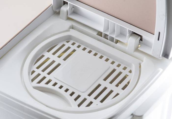 برند جنرال الکتریک از بهترین نوع متریال کامپوزیت با ویژگیهایی نظیر ضد زنگزدگی و پوسیدگی و ضد برقگرفتگی برای تولید بدنه این محصول استفاده کرده است که میتوان از آن در محیطهای مختلف و درجات متفاوت رطوبت استفاده کرد. در این محصول از جنس پلیکربنات با خاصیت ضد خش و ضد زنگزدگی ساخته شده و در طراحی شکیل آن، در دستگاه رو به بالا باز میشود.