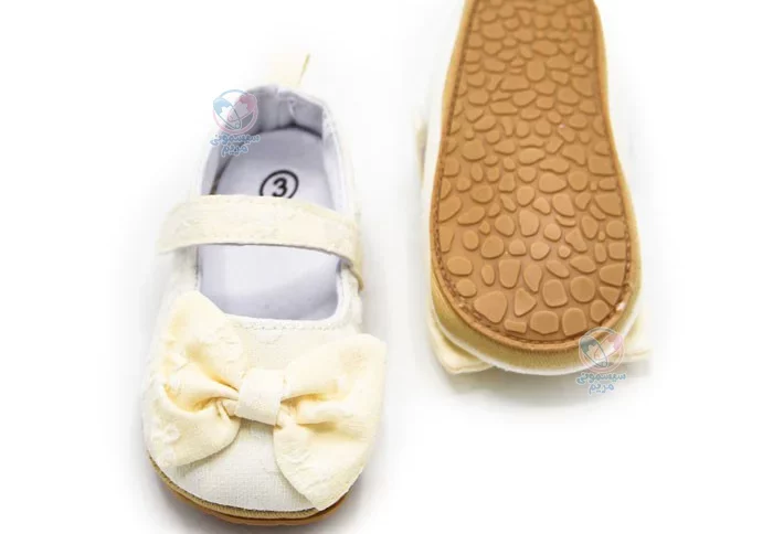 پاپوش دخترونه جلو پاپیونی با مبدأ برند ترکیه، بهدلیل طراحی خاص و رنگ کرم خود، در گروه کفشهای دخترانه محبوب قرار گرفته است. طراحی پاپیون بزرگ در جلوی این پاپوش، جلوهای فانتزی و دلربا به آن میبخشد و باعث میشود کودکان به راحتی جذب آن شوند. نوع بسته شدن این پاپوش چسبی است که به والدین اجازه میدهد به سادگی و راحتی کفش را به پای کودک خود بپوشانند و درآورند. در ادامه بیشتر با ویژگیهای این محصول آشنا خواهیم شد.