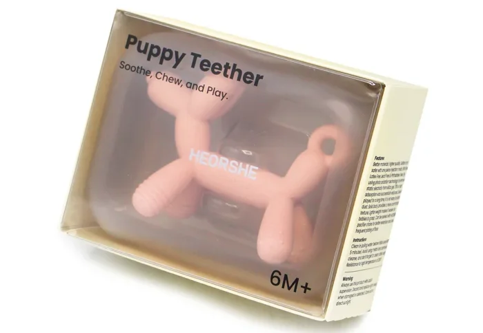 - طراحی کاربردی و زیبا: شکل ظاهری این دندانگیر به شکل سگ طراحی شده است که علاوهبر جذابیت، به راحتی در دست نوزاد قرار میگیرد؛