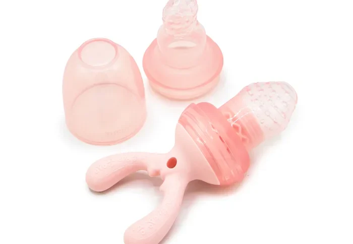 - دارای سوراخهای ریز برای خروج عصاره میوه: سری این پستانک دارای سوراخهای ظریفی است که هنگام مکیدن توسط نوزاد، تنها عصارهی میوه از آن خارج میشود. این ویژگی باعث میشود کودک بدون خطر خفگی، طعم میوهها را بچشد و همزمان دهان و لثهاش را تحریک کند؛