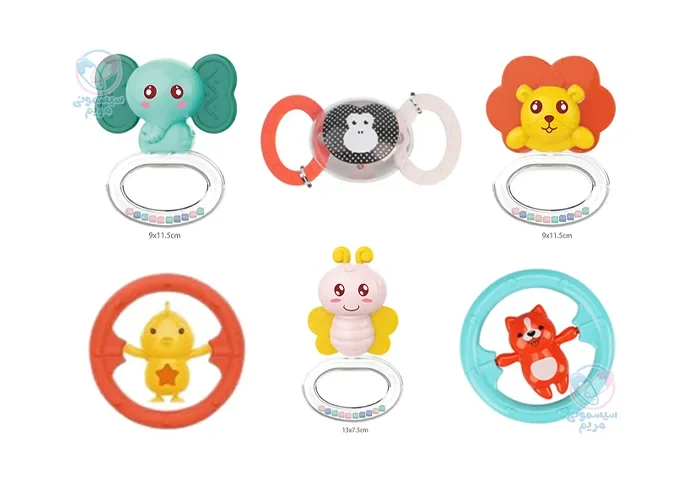 | سایر توضیحات | دارای 6 عدد جغجغه جذاب با شکل های متنوع, فاقد BPA و مواد شیمیایی مضر |