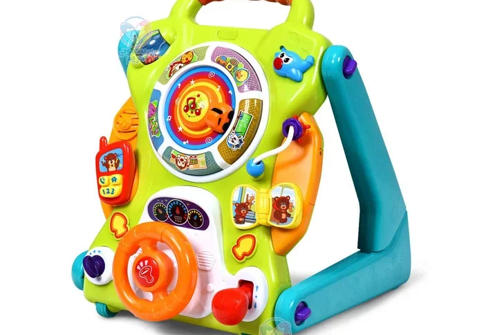 این واکر با چند حرکت ساده به یک میز آموزشی تبدیل میشود که میتواند محیطی امن و سرگرمکننده برای کودکان فراهم آورد. با تغییر سرعت حرکت واکر، سرعت آهنگ نیز تغییر میکند که این امر میتواند توجه کودک را جلب کرده و به او انگیزه بیشتری برای حرکت دهد. همچنین این واکر، چراغهای رنگارنگ و جذابی دارد که با ریتم موسیقی هماهنگ میشوند، محیطی شاد و مفرح برای کودک ایجاد میکنند. در کنار همه این موارد، طراحی محکم و استحکام بالا، اطمینان از امنیت کودک در هنگام استفاده از واکر را به همراه دارد.