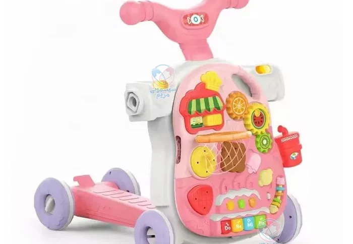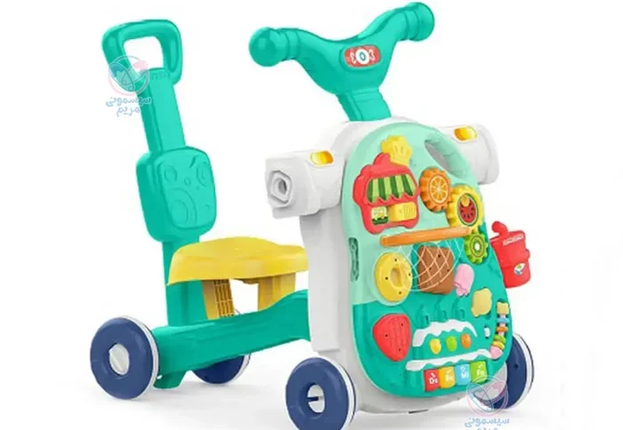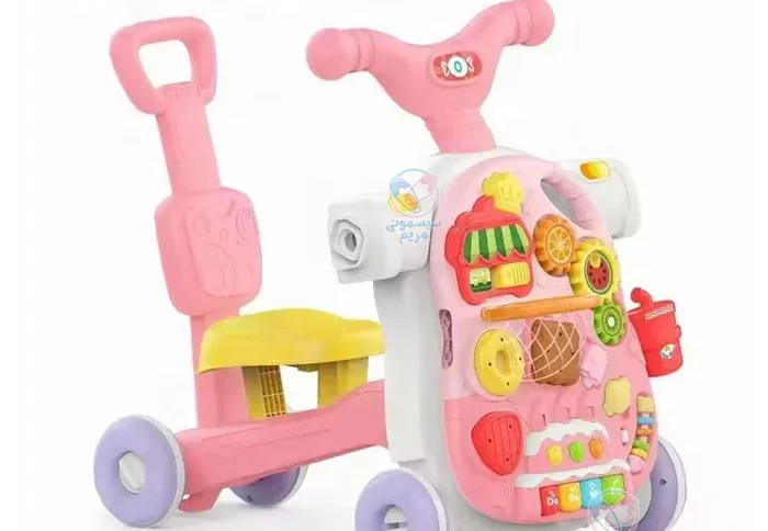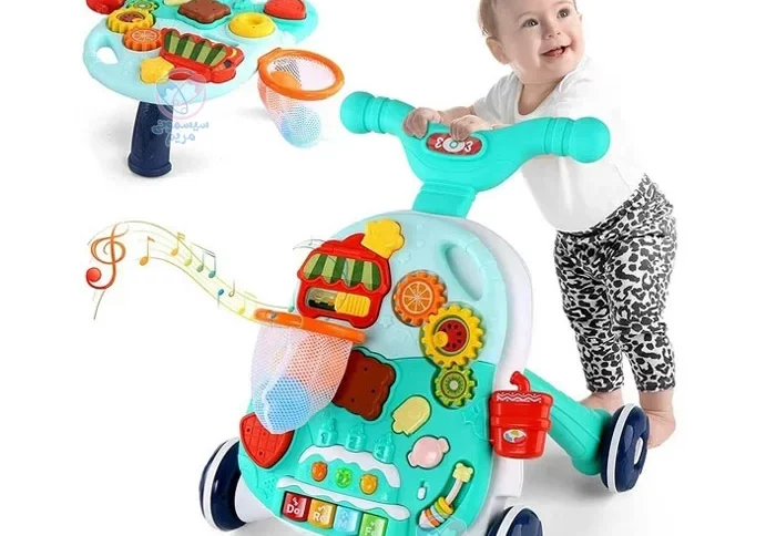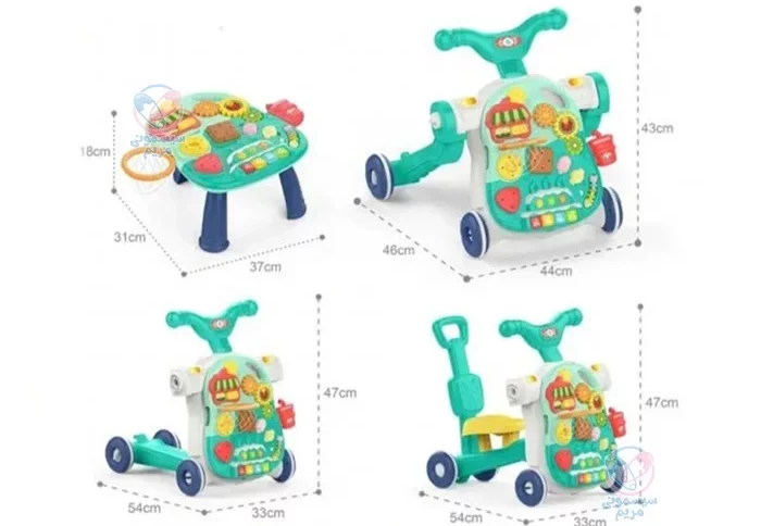 با قابلیت تبدیل به میز بازی، سه چرخه و اسکوتر، دستگیره جهت هل دادن و کنترل واکر توسط والدین، با رنگ‌های شاد و جذاب، مناسب برای آموزش اعداد، رنگ‌ها، اشکال و صداها، با قابلیت تنظیم سرعت حرکت (ترمزدار)