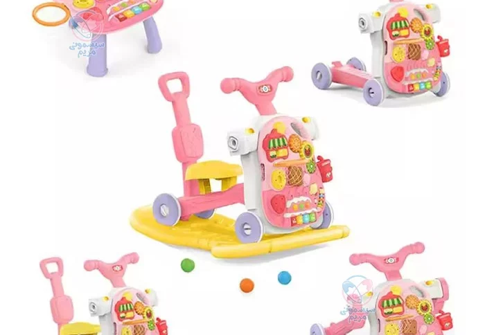 • قابل تبدیل به میز بازی، سه چرخه، راکر و اسکوتر