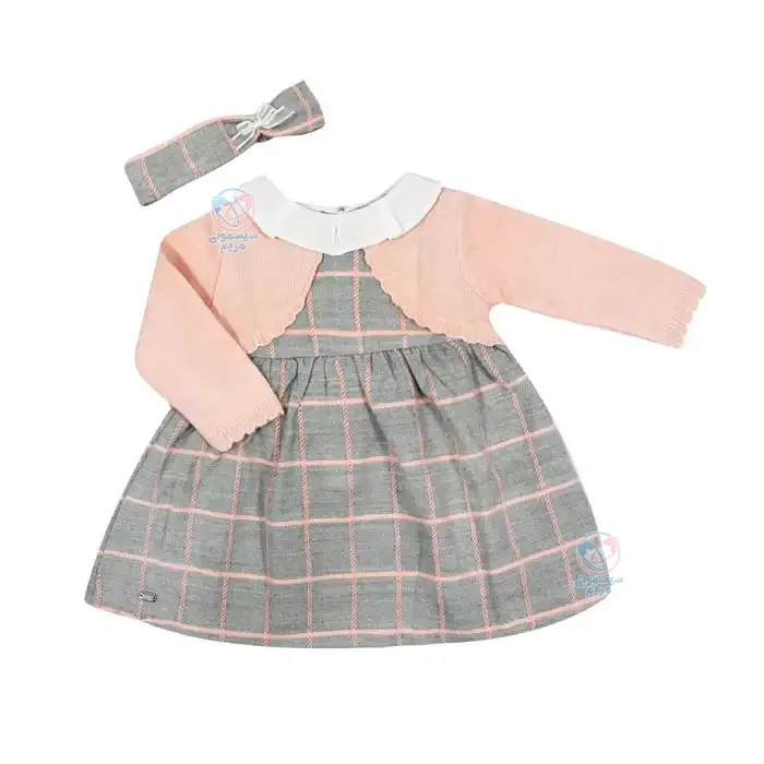 جنس نرم، ضد حساسیت، بدون تغییر شکل پس از شستشو, سارافون به دامن متصل است، دارای تل همرنگ با لباس با پاپیون
