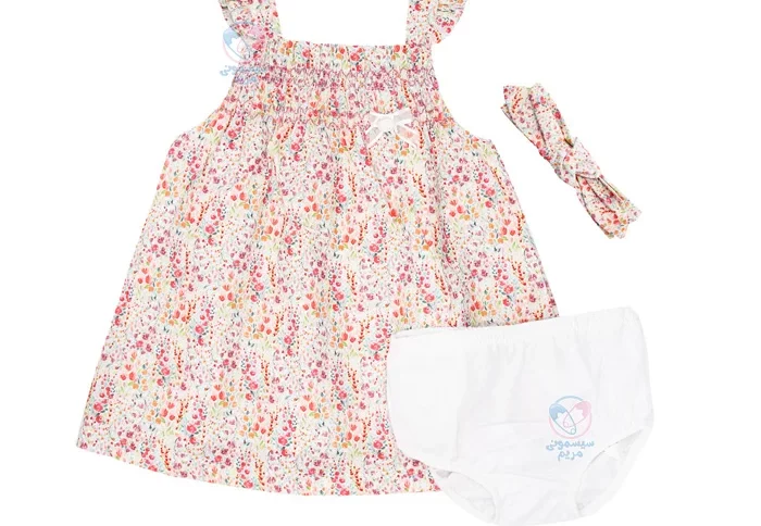 این محصول شامل سه تیکه از جمله پیراهن، شورتک هدبند است. این پیراهن به رنگ سفید طراحی شده است که ظاهری پاک و شاداب به کودک میدهد. طرح آبرنگی و طراحی شکیل این مدل، جذابیت بیشتری به آن اضافه میکند و باعث میشود کودکان در هر مجلسی خوشپوش و زیبا دیده شوند. از ویژگیهای دیگر این محصول، میتوان به موارد زیر اشاره کرد: