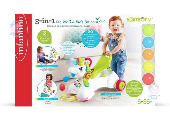 واکرهای آموزشی علاوهبر تقویت مهارتهای حرکتی در کودکان، مجهز به صفحه بازی جهت سرگرمی و آموزش کودکان است. واکر اینفانتینو Infantino یونیکورن، یکی از انواع واکرهای آموزشی است که به حفظ تعادل در راه رفتن کودک کمک میکند. این محصول دارای بازیهای متنوع آموزشی و رنگارنگ برای تقویت حواس چندگانه کودک است. این واکر دوکاره است و قابلیت تبدیل شدن به ماشین چهارچرخ را نیز دارد. در ادامه بیشتر درباره این محصول توضیح خواهیم داد.