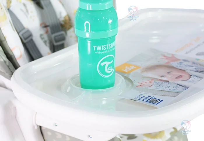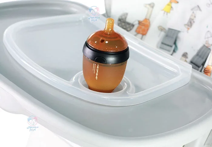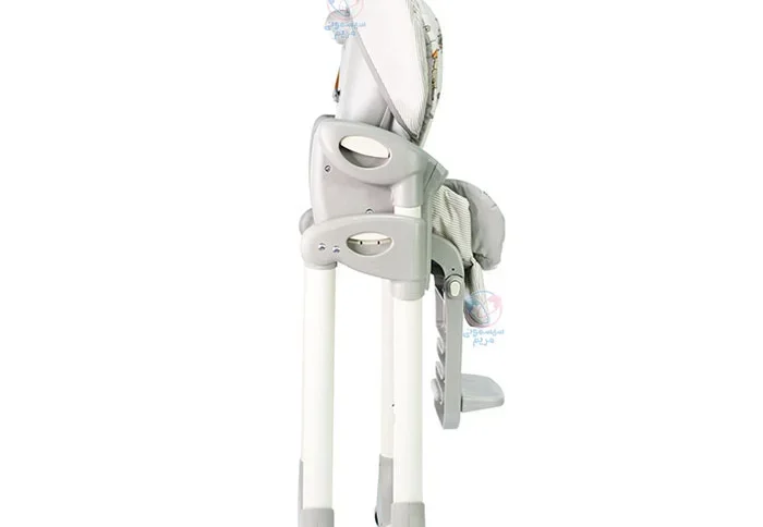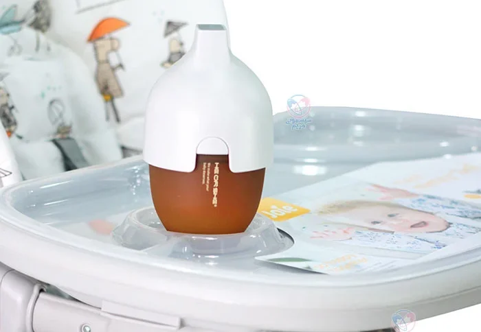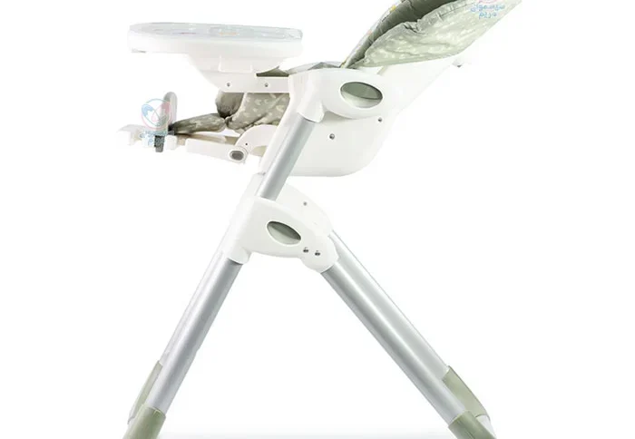 قابلیت تنظیم ارتفاع این صندلی باعث میشود مادر به راحتی در حالت نشسته روی زمین نیز بتواند به کودک خود غذا بدهد. از طرفی سینیهای این صندلی در سه حالت مجزا هستند که هر کدام حجم خاصی از مواد غذایی را در بر میگیرند. این سینیها به راحتی قابل جدا شدن هستند و میتوان متناسب با حجم غذا از سینی با ابعاد مختلف استفاده نمود.