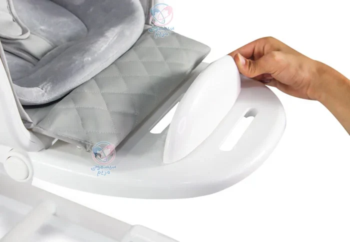 - این صندلی قابلیت تبدیل به حالت تاب برای نوزادان را دارد و پس از سنین بالاتر، میتوان آن را به صندلی غذا تبدیل کرد؛
