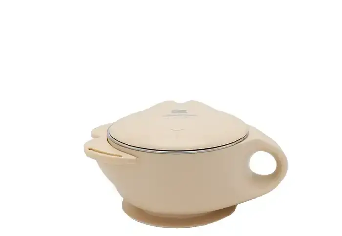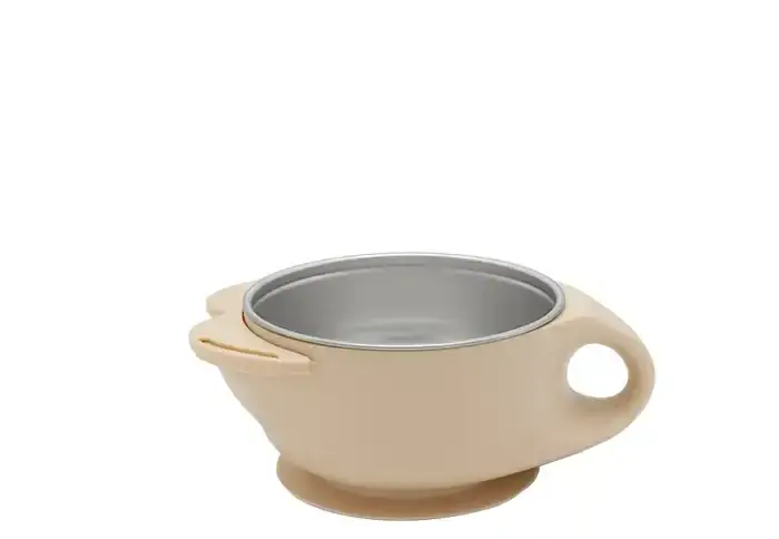 این ظرف دارای دو لایه با جنسهای متفاوت است. لایه بیرونی این ظرف از پلاستیک مقاوم و لایه داخلی آن از استیل ساخته شده است. این طراحی دو جداره به حفظ دمای غذا کمک میکند و در عینحال، ایمنی و بهداشت غذای کودک را تضمین مینماید.