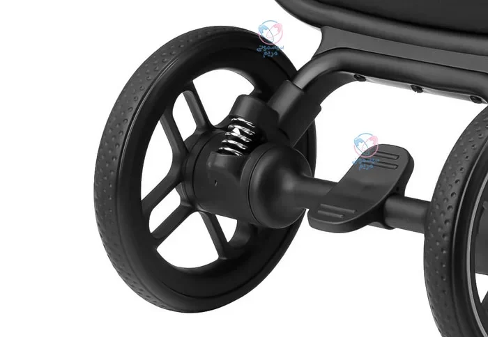 - این کالسکه دارای سیستم تعلیق ضربهگیر و کمکفنر است که حرکت نرم و بدون لرزش را برای کودک فراهم میکند؛