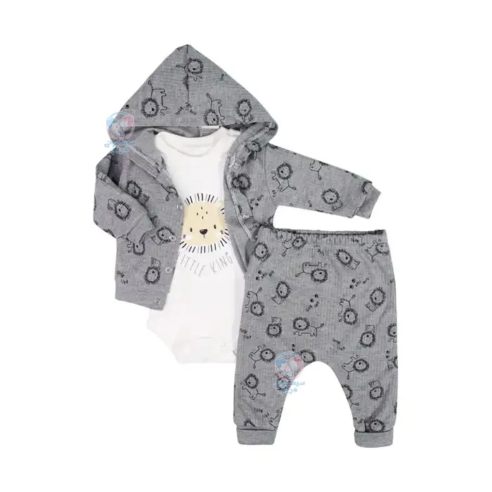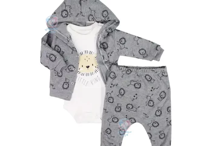 سه تیکه بادی و شلوار مینی پاکل Mini Pakel طرح شیر، شامل یک کت، زیردکمه (بادی) و شلوار است. این ست با رنگ طوسی و طرح شیر طراحی شده که زیبایی خاصی به آن میبخشد. با توجه به جنس نخپنبهای و طراحی منحصربهفرد، این ست برای استفاده در تمامی فصول سال مناسب است. در ادامه بیشتر با ویژگیهای این محصول آشنا خواهیم شد.