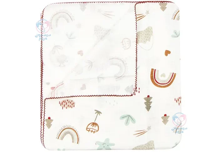 این پتو از پارچه ۱۰۰٪ نخ طبیعی تولید شده که بسیار نرم، لطیف و سبک است. طراحی آن با طرح رنگینکمان روی زمینه کرمرنگ، حالوهوایی آرام، دلنشین و مناسب برای اتاق کودک ایجاد میکند. اندازه مناسب ۹۵×۸۵ سانتیمتر نیز برای پوشاندن کامل بدن نوزاد در تخت، کالسکه یا آغوشی عالی است و استفاده از آن در سفر، مهمانی یا منزل را آسان میسازد.
