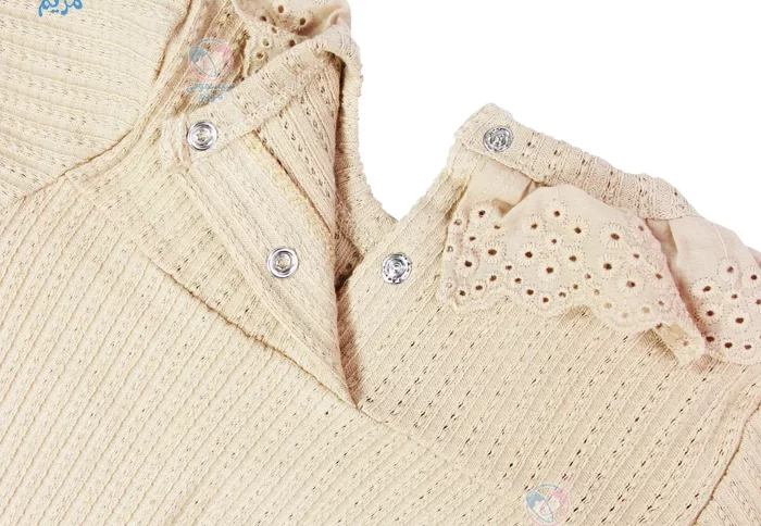 سرهمی یقه توردار از جنس پارچه کبریتی ساخته شده است. این نوع پارچه، نرمی و لطافت، دوام و استحکام بالا و ضد حساسیت است.